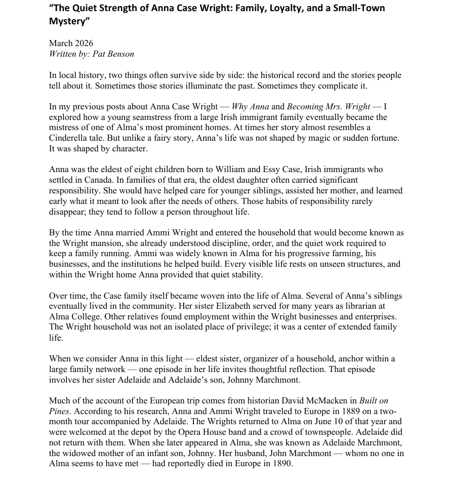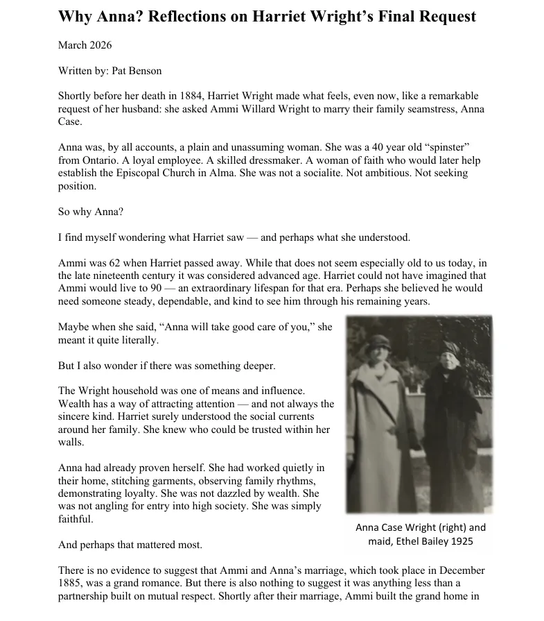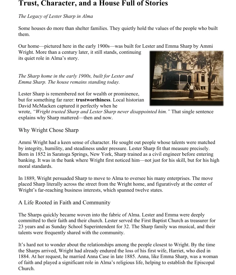 Together, we can help ensure the Wright House remains a cherished part of Alma's heritage for years to come.